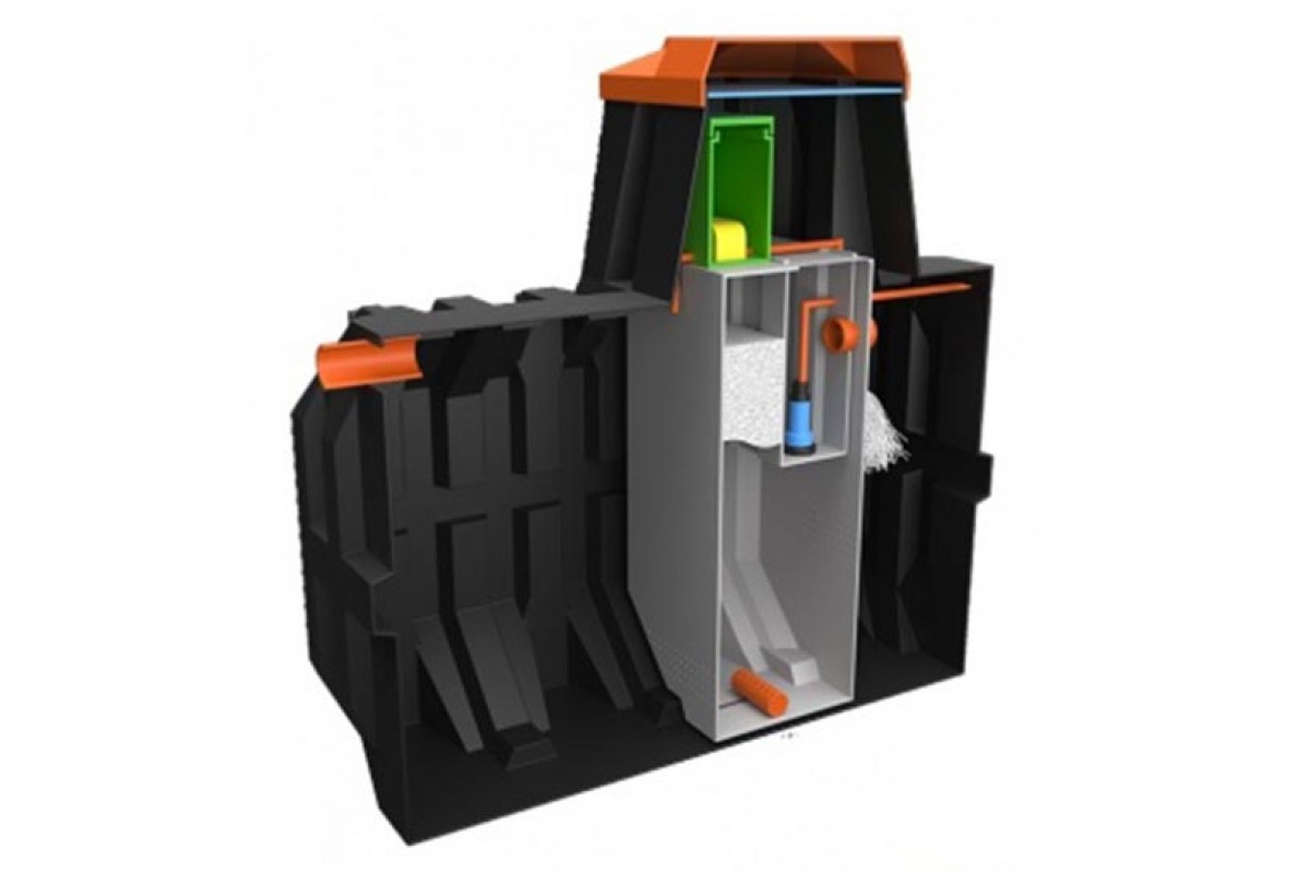 - Корпус станции выполнен по технологии ротационной формовки, благодаря чему корпус станции имеет 100% герметичность и повышенную прочность. Ребра жесткости и высокая горловина делают его подходящим для любого типа грунта, в особенности с участками с УГВ.
