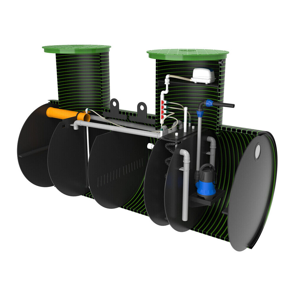 Трех-камерная станция биологической очистки имеет горизонтальное исполнение для простого и незатратного монтажа при высоких УГВ (УГВ - уровень грунтовых вод). За счет горизонтального исполнения станция имеет минимальную монтажную глубину ( всего лишь 1300-1500 мм до дна котлована!) что делает ее лидером среди всех станций биологической очистки на рынке СНГ по удобству и простоте монтажа при высоком уровне грунтовых вод. Не требует якорения! Всплытие исключено!
