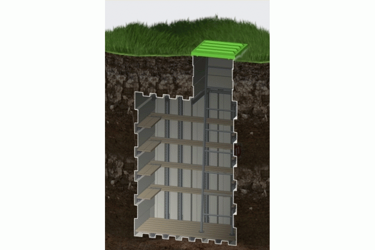 Внутри можно стоять в полный рост — высота всех погребов внутри 2,1м. С горловиной полная высота погребов составляет 2,6м. При таком заглублении создается оптимальная температура для хранения яблок, картофеля, и остального урожая. Предусмотрена вентиляция для поддержания необходимой влажности. Так же в комплект входит переносной светодиодный светильник с аккумулятором. Очень удобно освещать верхние и нижние полки.