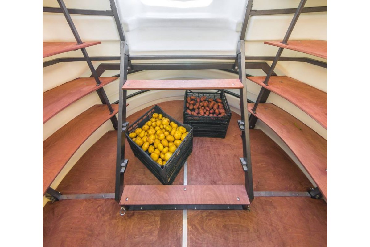 Внутри можно стоять в полный рост — высота всех погребов внутри 2,1м. С горловиной полная высота погребов составляет 2,6м. При таком заглублении создается оптимальная температура для хранения яблок, картофеля, и остального урожая. Предусмотрена вентиляция для поддержания необходимой влажности. Так же в комплект входит переносной светодиодный светильник с аккумулятором. Очень удобно освещать верхние и нижние полки.