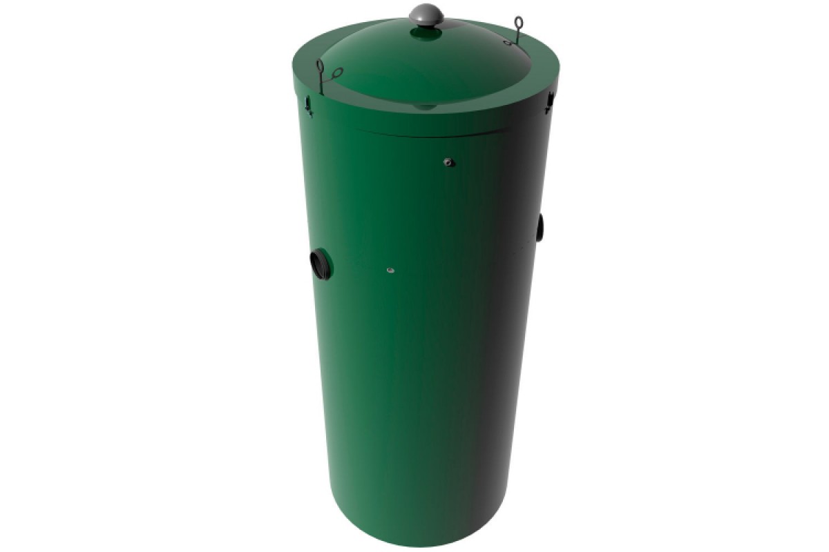 Цилиндрический корпус устанавливается в колодец септик из стандартных бетонных колец.