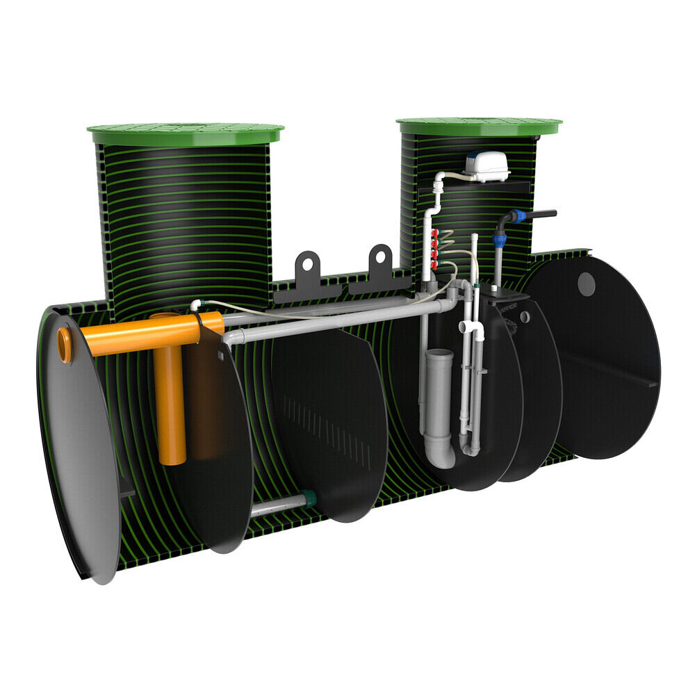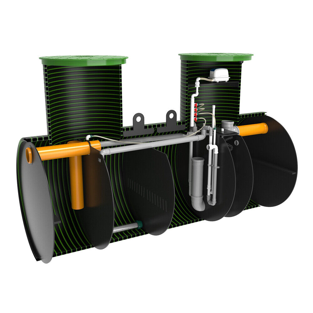 Трех-камерная станция биологической очистки имеет горизонтальное исполнение для простого и незатратного монтажа при высоких УГВ (УГВ - уровень грунтовых вод). За счет горизонтального исполнения станция имеет минимальную монтажную глубину ( всего лишь 1300-1500 мм до дна котлована!) что делает ее лидером среди всех станций биологической очистки на рынке СНГ по удобству и простоте монтажа при высоком уровне грунтовых вод. Не требует якорения! Всплытие исключено!