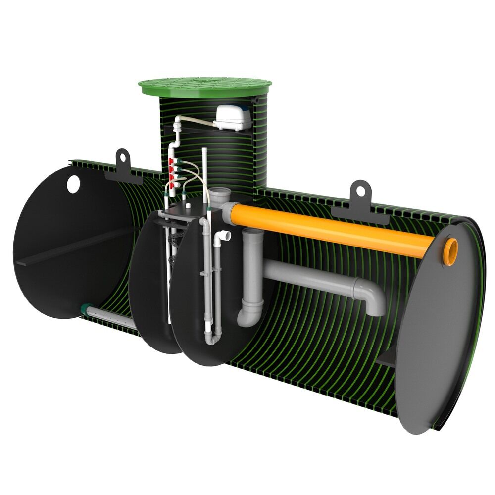 Принцип работы данного септика основан на мелкопузырчатой аэрации, которую создает аэратор (компрессор, воздуходувка), поставляемый в комплекте станции. За счет подачи воздуха в станцию, а также за счет дополнительных механизмов очистки происходит полная очистка хоз. бытовых стоков до уровня технической воды биологическим способом. Степень очистки станции при идеальных условиях достигает 98%. Вода на выходе не имеет запахов, абсолютно прозрачна и бесцветна. Такую, экологически чистую техническую воду можно достаточно долгое время дренировать в грунт, в канаву, дренажный колодец, в поле фильтрации. Вопреки всем мифам, в станцию не нужно добавлять никаких бактерий!
