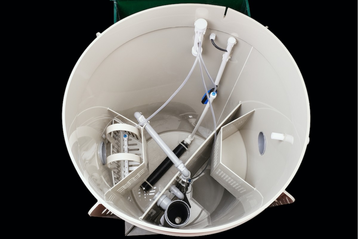 - Блок управления вынесен из корпуса станции! Если даже станция переполнится, то блок автоматики с компрессором не зальет! Не нужно тратиться на ремонт электрики!