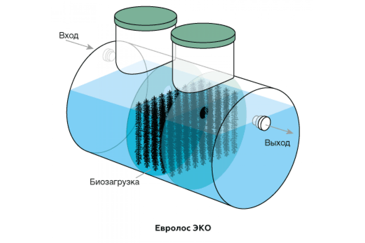 Во втором отсеке, за счет деятельности анаэробных бактерий, которые располагаются на биологической загрузке происходит биоочистка стоков;