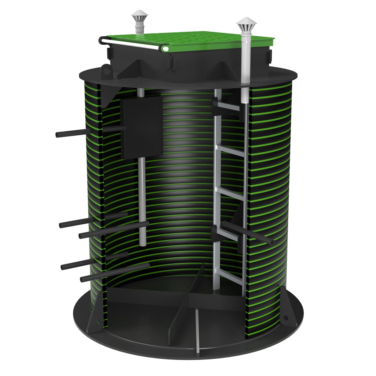 Мощный ПЭ корпус толщиной 25 мм: Все модели кессона KANN серии KS изготовлены из спиральновитой трубы "СПИРОЛАЙН". Корпус кессона имеет толщину 25 мм и выполнен из первичного полиэтилена марки ПЭ100. Материал корпуса кессона KANN серии KS устойчив к низким и высоким температурам, что позволяет использовать его в любых погодных условиях. Мы гарантируем Вам 100% герметичность нашего кессона!