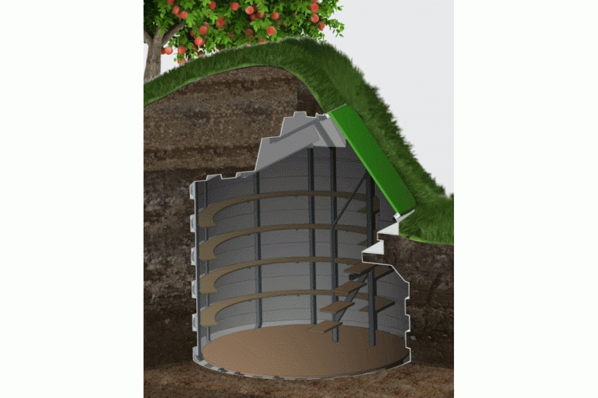 Внутри можно стоять в полный рост — высота всех погребов внутри 2,1м. С горловиной полная высота погребов составляет 2,6м. При таком заглублении создается оптимальная температура для хранения яблок, картофеля, и остального урожая. Предусмотрена вентиляция для поддержания необходимой влажности. Так же в комплект входит переносной светодиодный светильник с аккумулятором. Очень удобно освещать верхние и нижние полки.