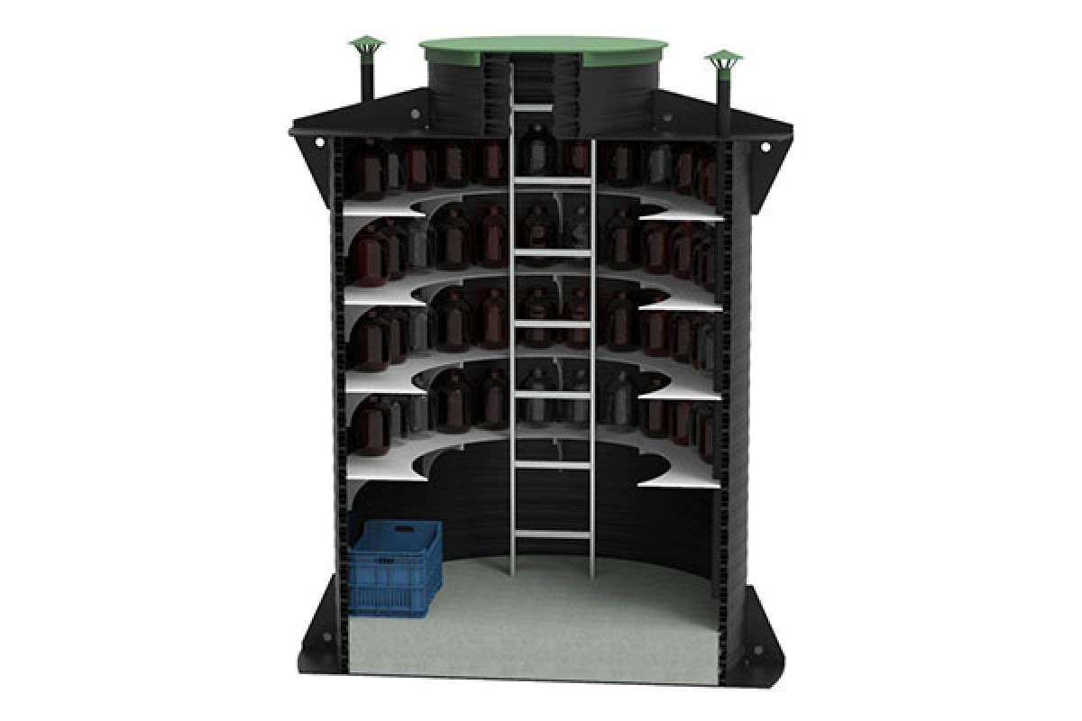 - Надежный корпус крепче конкурентных аналогов за счет круглой формы и толстой стенки - 30 мм. Круглая форма компенсирует давление грунта. Сварные пластиковые полки являются дополнительными несущими элементами погреба, это дает 100% уверенность и гарантию на долгие годы