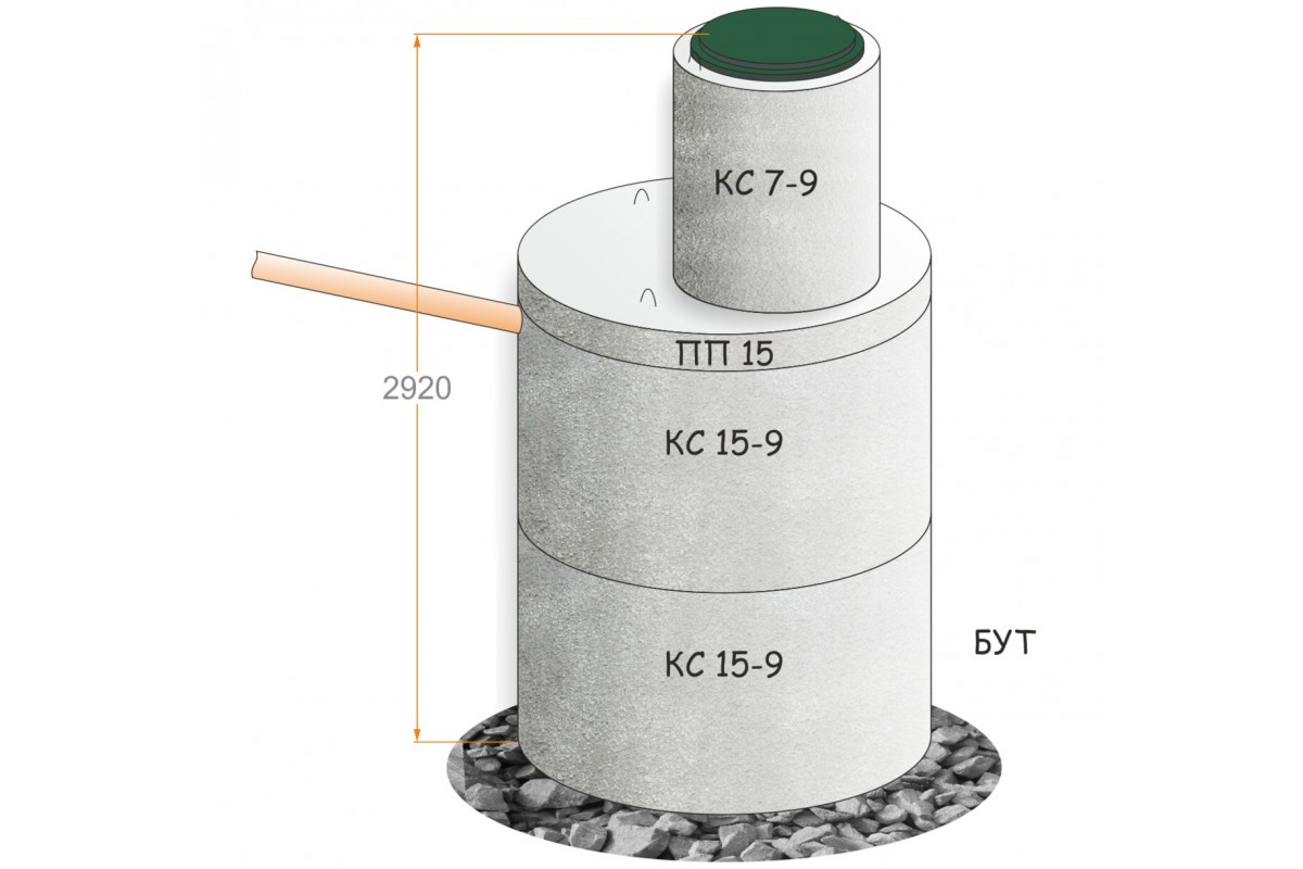 Колодец из 2-х бетонных колец d=1.5 м, 3.2 м³