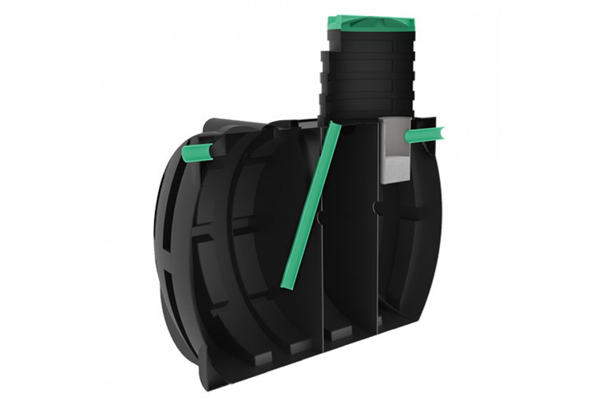 Септик Термит Профи+ 6.5 S имеет общий объем 6500 литров, и производительность 2700 литров в сутки, которой хватит на 15 человек.